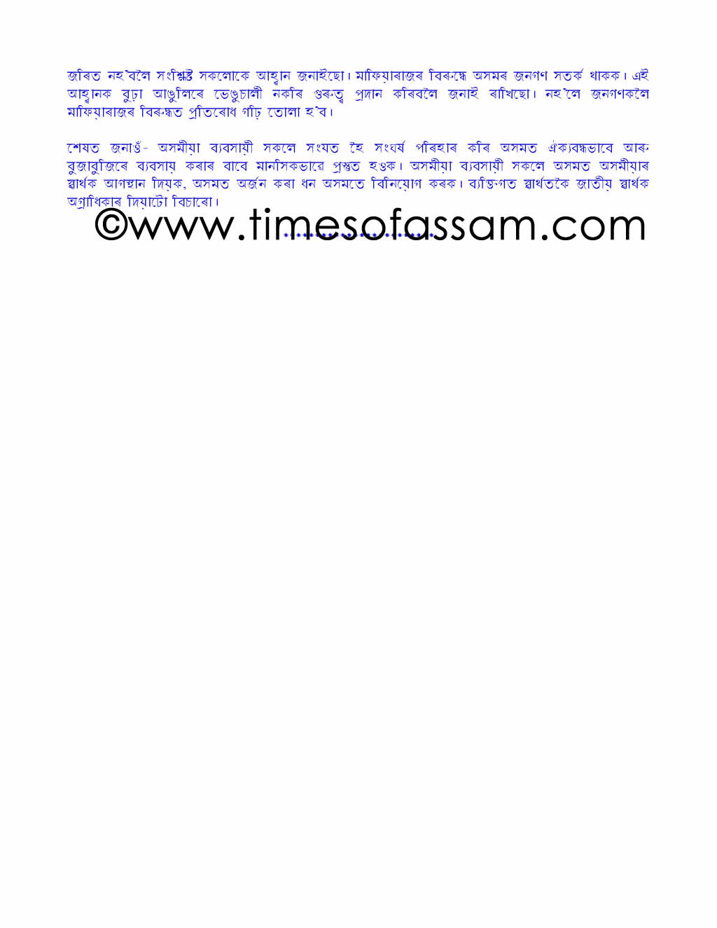 It is to be mentioned that some of Assamese Media like Asomiya Pratidin etc published news today that Arabinda Rajkhowa and his followers are running Coal Syndicate in Guwahati. While base of the report was report was related to the incident of firing on the Mayur Talukdar’s house by Sailen Dutta Konwar happened yesterday. Mayur Talukdar is the owner of newly born Assamese daily newspaper Niyamia Barta while Sailen Dutta Konwar is the owner of another Assamese daily newspaper Assamiya Khabor. Before the born of Niyamia Barta, Mayur Talukdar was owner of the newspaper Assamiya Khabor jointly with Sailen Dutta Konwar as along with other joint business ventures. In recent days relation between Mayur Talukdar and Sailen Dutta Konwar developed enmity and in result of this enmity Sailen Dutta Konwar fired on Talukdar’s house yesterday with AK assault rifle.