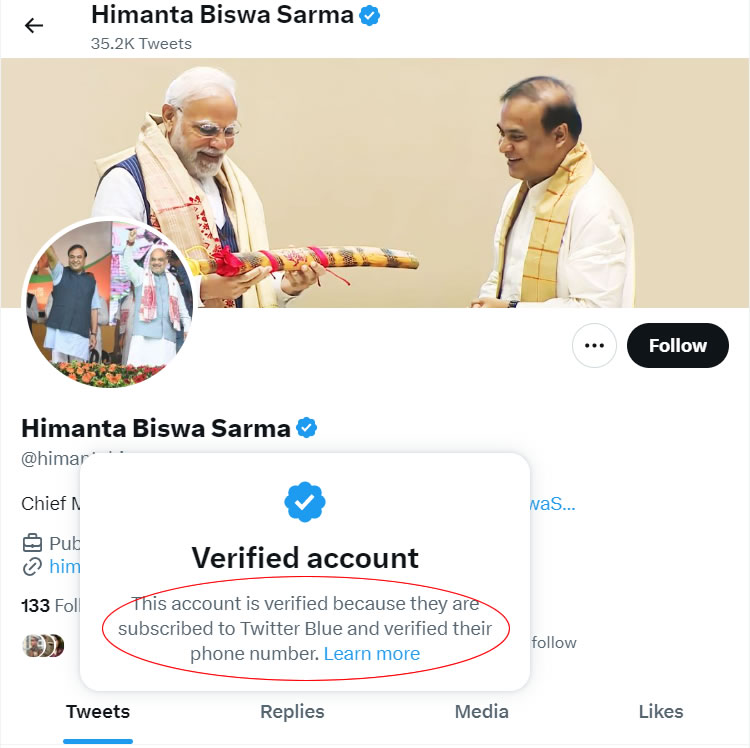 Meanwhile, Assam Chief Minister Himanta Biswa Sarma’s Twitter profiles indicate he has paid the blue mark and his phone number is checked.
