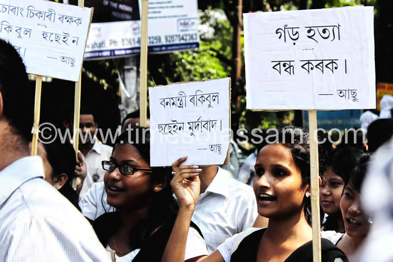Students of Gauhati University protesting against Rhino killings in Assam.