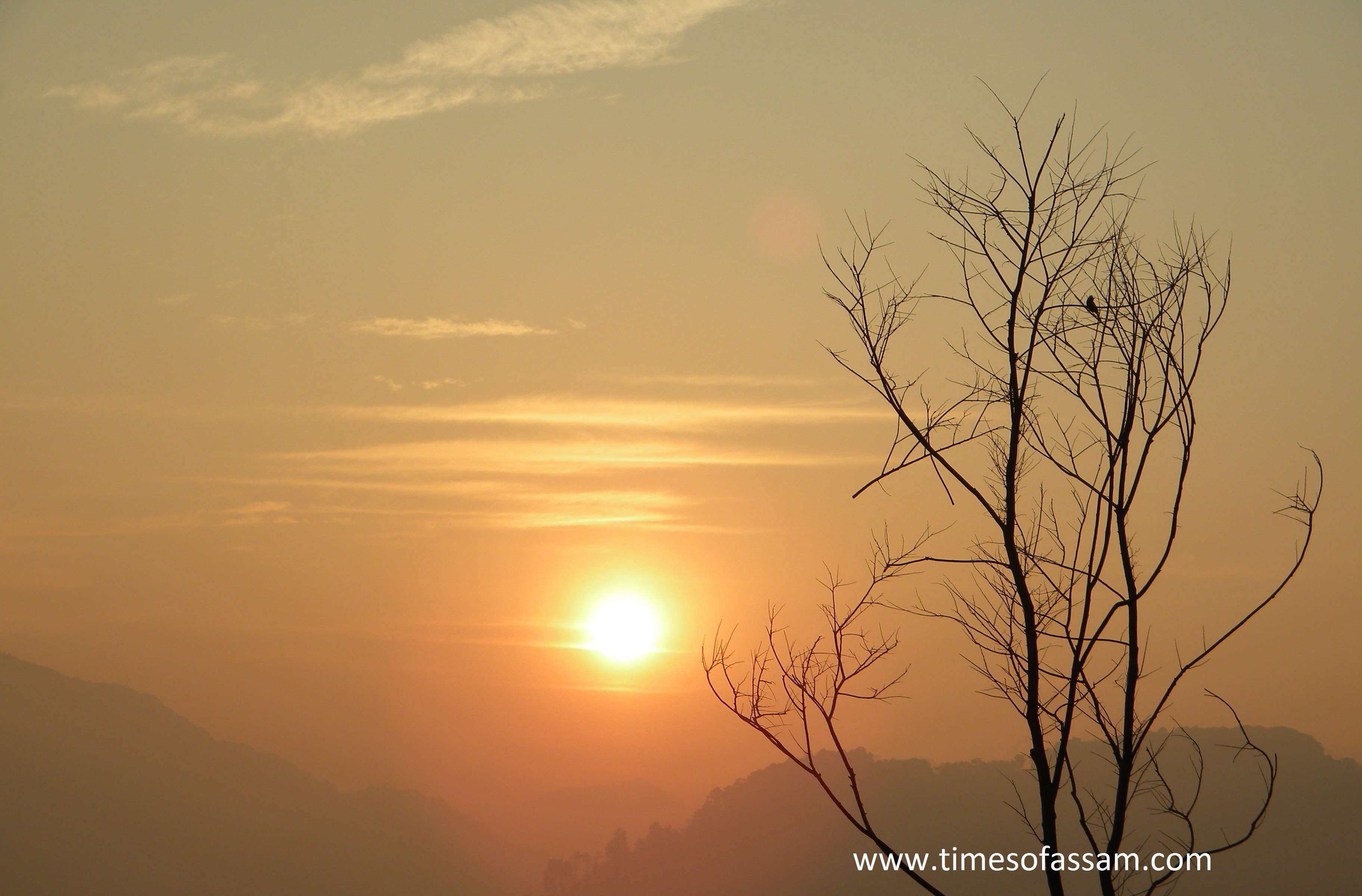 Photo by Monjit Gogoi The Sun sets through the hills of beautiful Doimukh